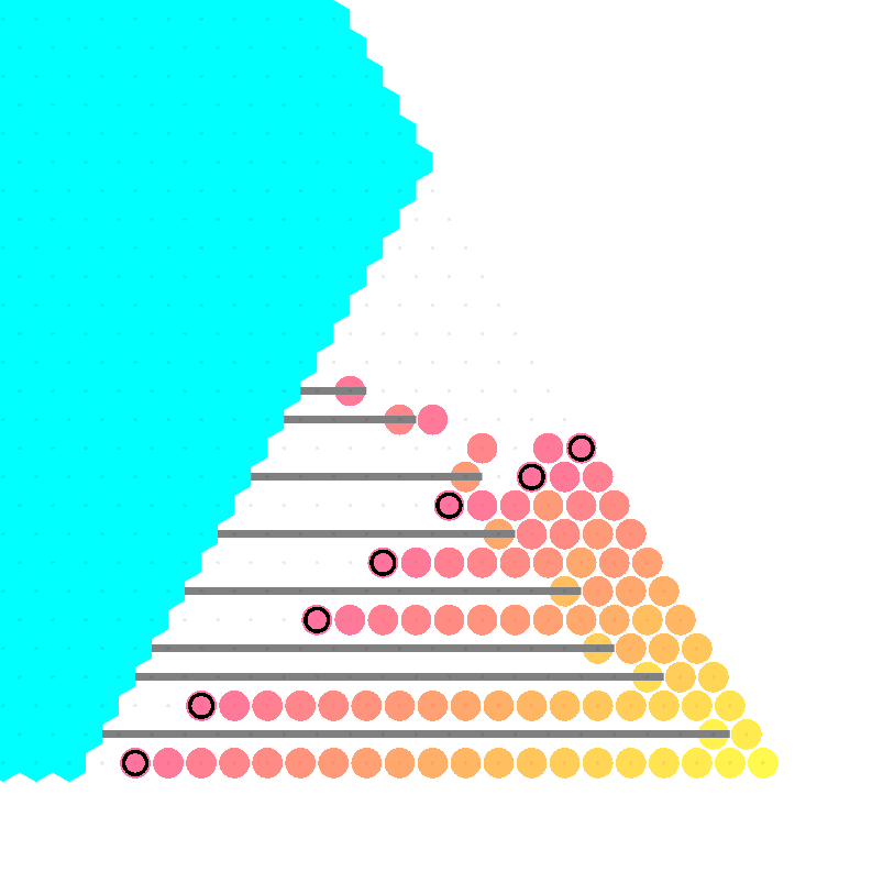 Second picture is the first place a periodic pattern with period not 1 occurs, at k=120, circled, as described by